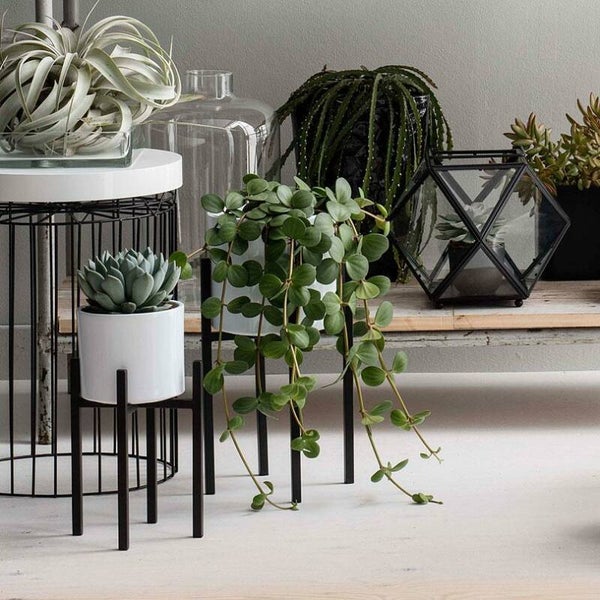De plantenstandaard is gemaakt van zwart gelakt metaal en past perfect in de industriële en botanische trend van dit moment.